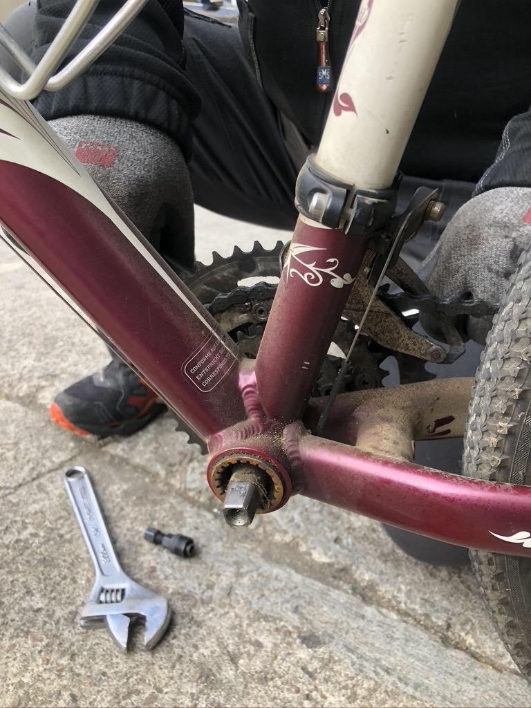 마지막으로 패달 부분을 분해하였습니다. 자전거 종류에 따라 여러 가지 다른 구조를 가지고 있다고 합니다. 이번에 분해한 것은 일체형 연결부위 안에 (정확한 명칭을 잊었습니다. ㅠ) 베어링이 들어 있었습니다.
