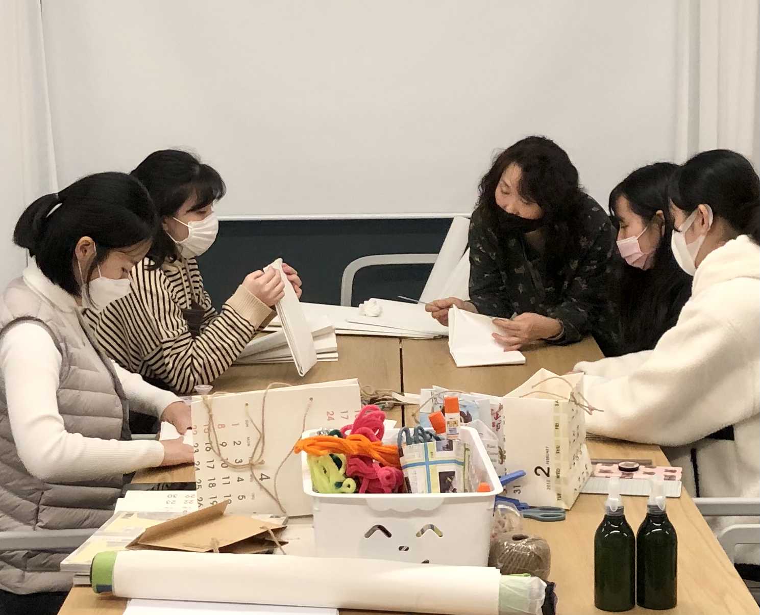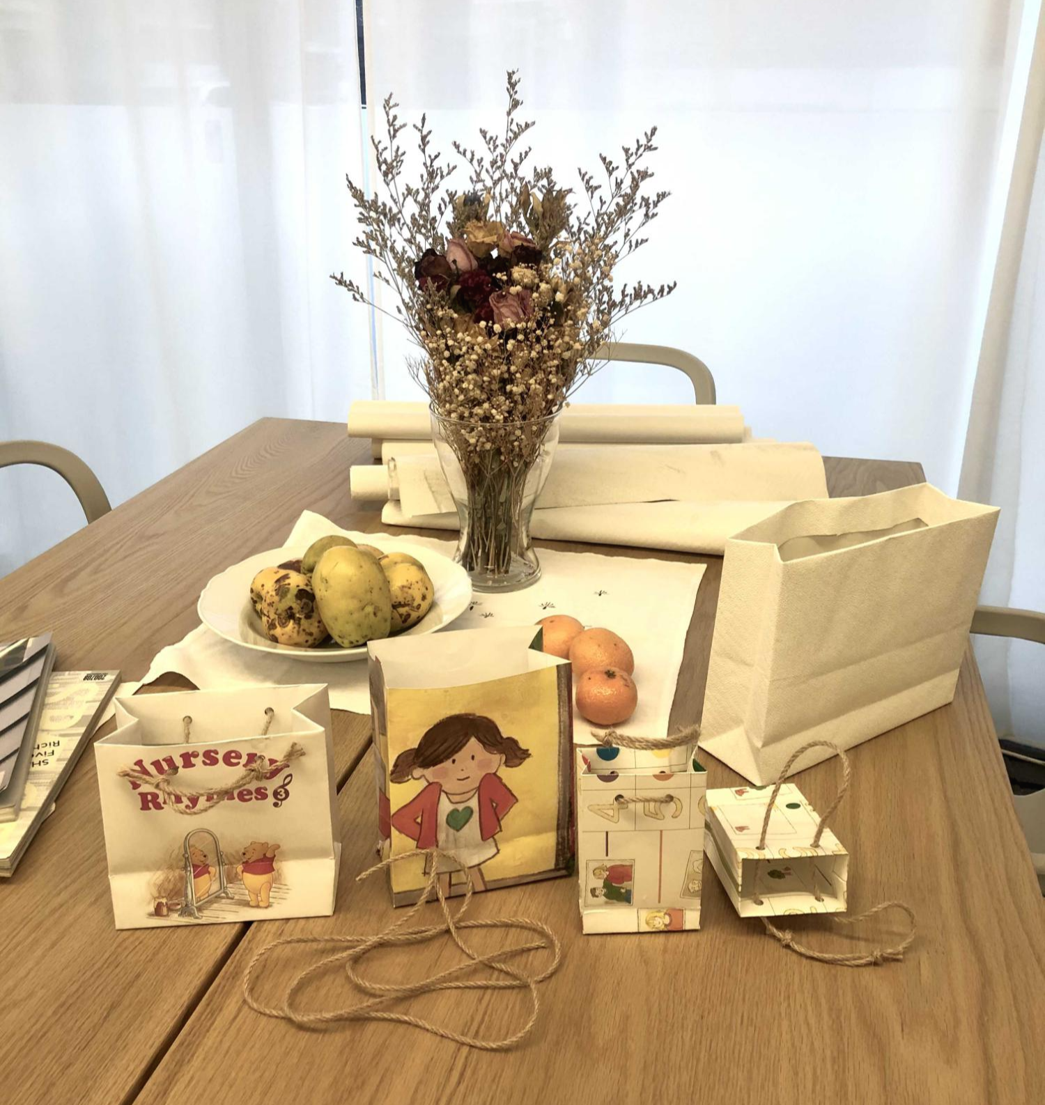 지난번 수업에 참여하셨던 주민분께서 기증하신 오래 보관하던 벽지와 박향신 선생님이 모아오신 그림책 정이나 달력 종이를 활용하여 가방을 만들었어요!!