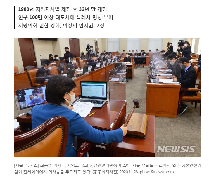(한상규 기자) 지난 2일 국회 행정안전위원회 법안심사 제1소위원회에 이어 지난 3일 전체회의에서 지방자치법 전부개정안이 의결돼 본회의 처리만을 남겨놓고 있어 개정이 확실시 되는 가운데
