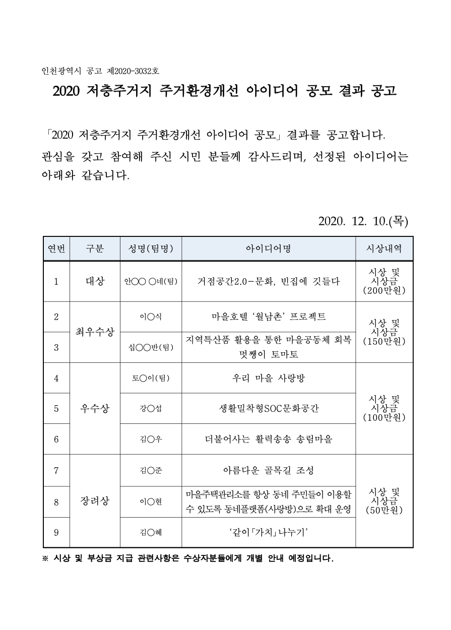 2020 저층주거지 주거환경개선 아이디어 공모전 '대상' 수상