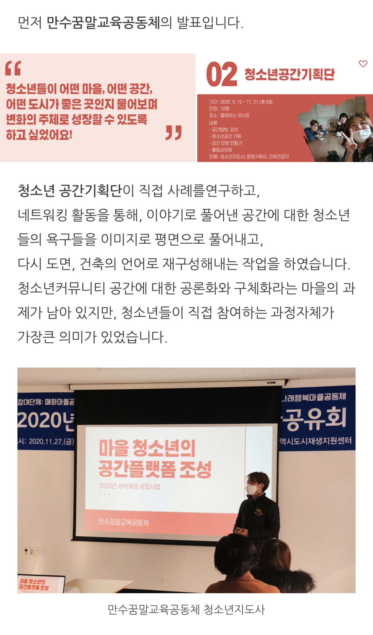 2021년도에는 만수동 꿈꾸는마을 교육공동체와 함께