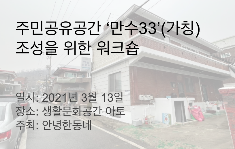 안녕한동네에서 주최하는 '주민 공유공간 조성을 위한 워크숍' 2차 프로그램이 진행되었습니다.