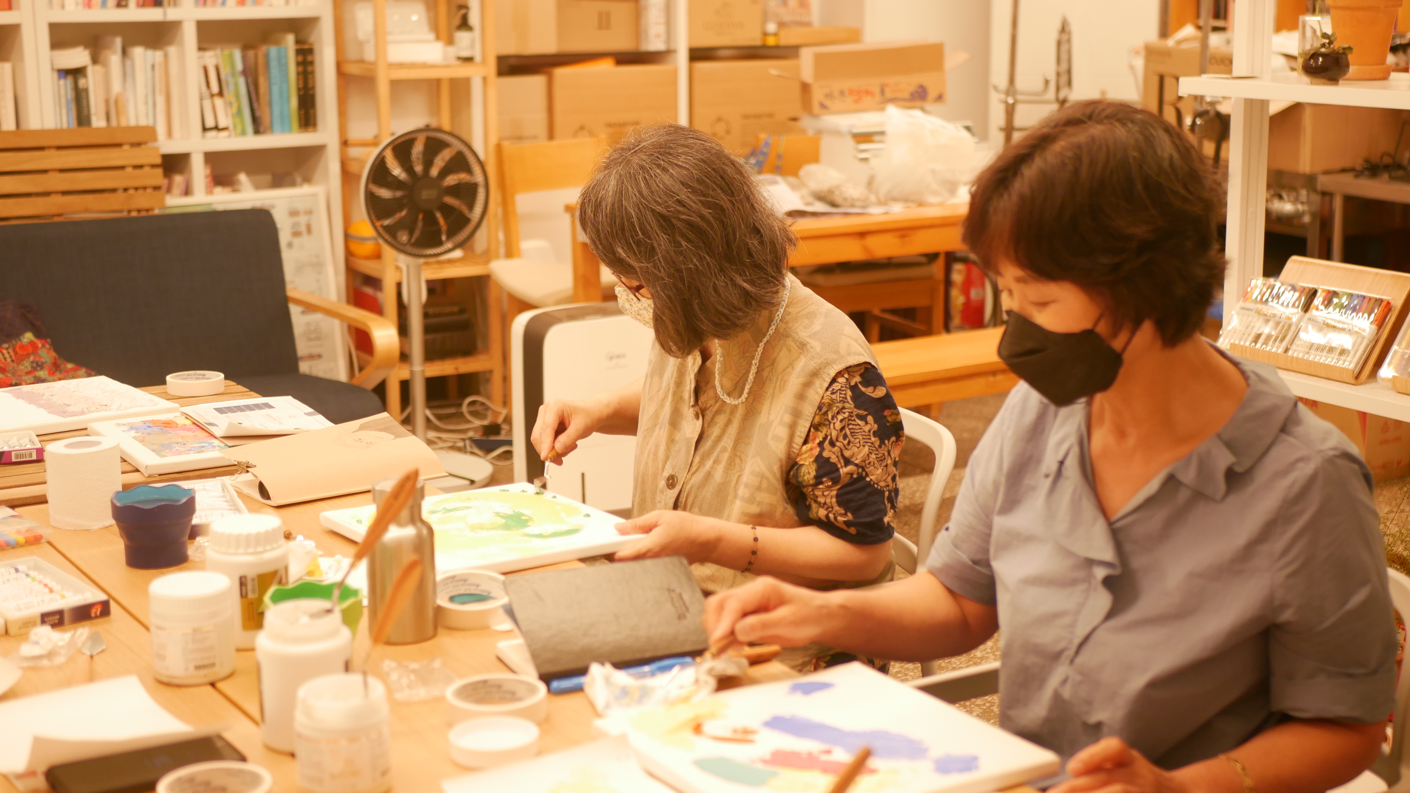 색감과 질감으로만 나를 표현하는 드롭백 패인팅 시간. 주민들이 서로를 조금씩 더 이해할수 있는 시간이었습니다!
