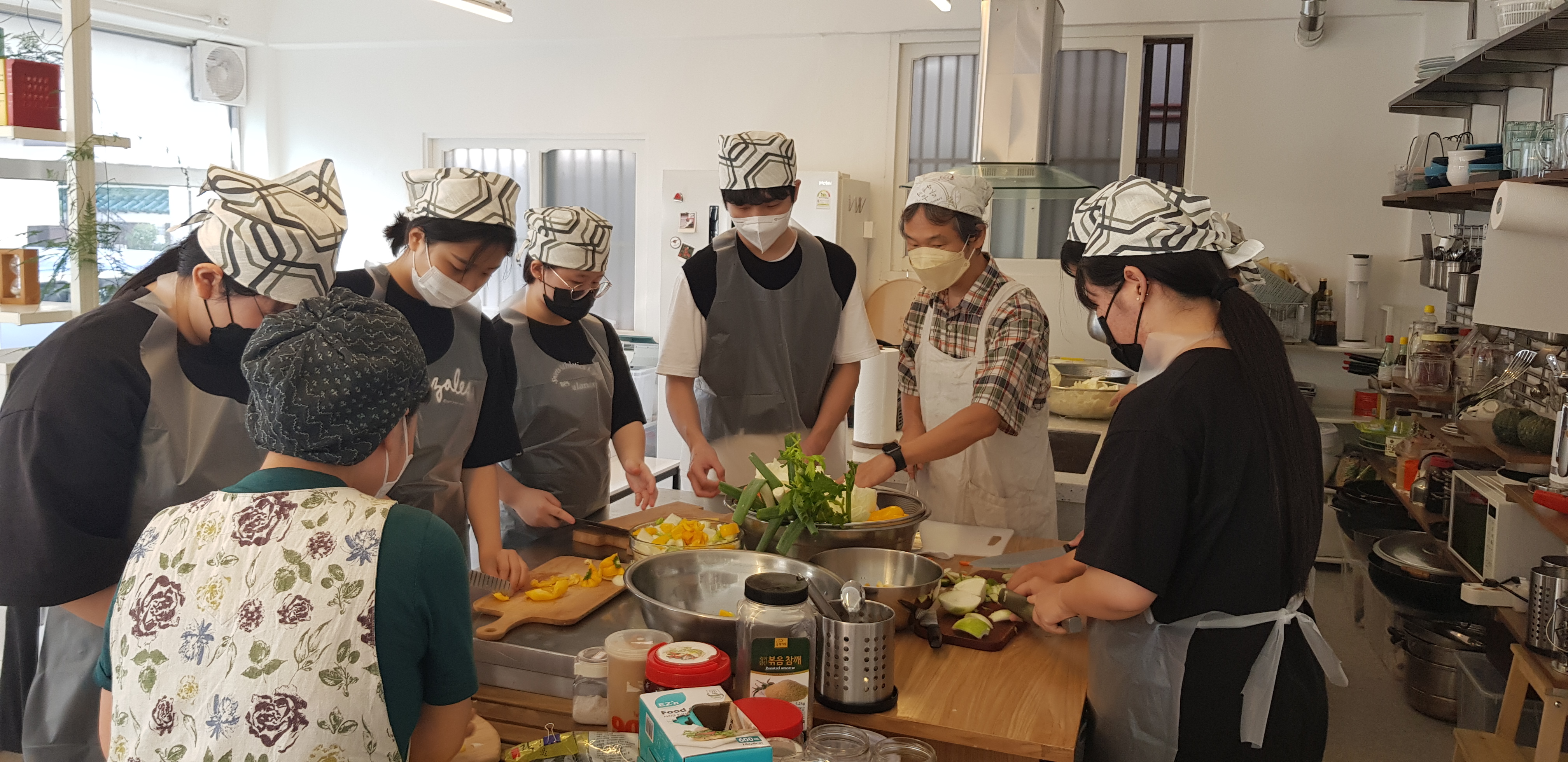 고향주방 조리사님이 재능기부를 통해서 마을 학생, 청년들에게 건강식 요리법을 가르쳐 주셨습니다-!